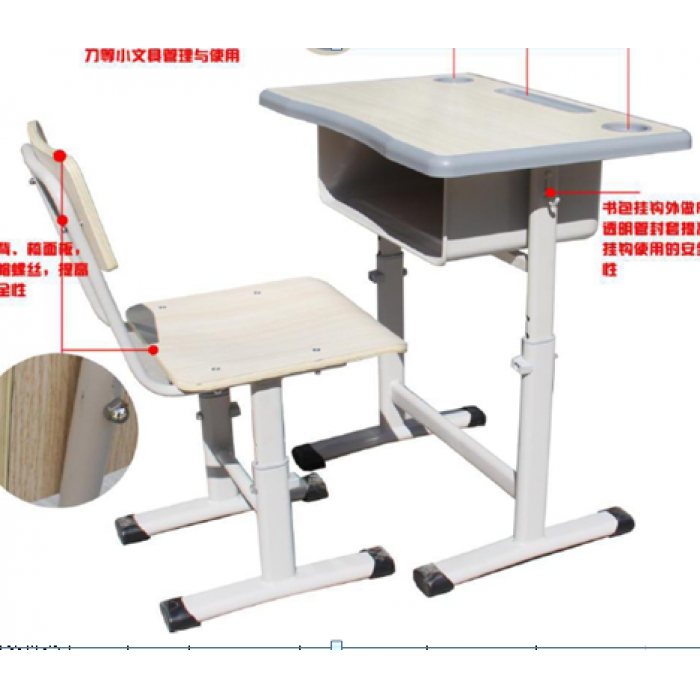 3311867,尺寸:课桌:650*450(700-760)/370*350*(380-440),材质:钢制+密度板贴防火板+挡笔条,颜色:招标样品颜色