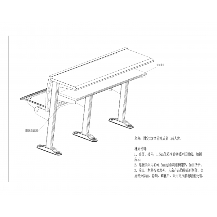 固定式F型两人前桌(阶梯教室)