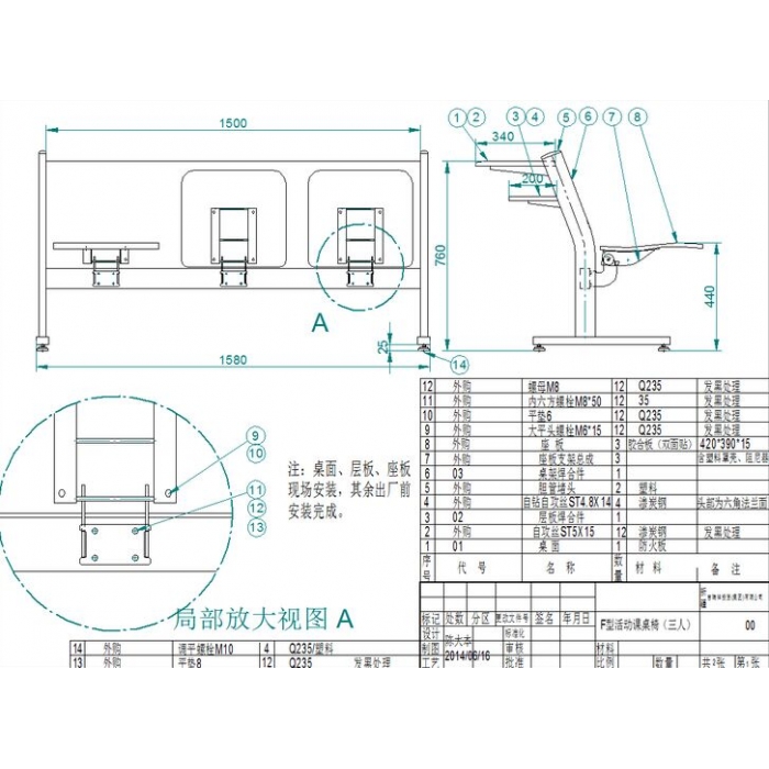 3311907,尺寸:1580*340*760,材质:钢制+刨花板(防火板)+胶合板,颜色:黑色+榉木