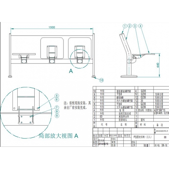 F型三人固定后椅