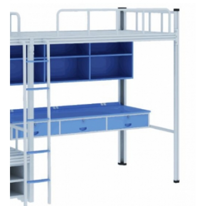 客户需求:1.床立柱:采用优质国标方管制作,管材规格为50*50*1.5mm;立柱上端、下端采用高强度聚氨酯材料封头; 2.床帮:采用优质滚压成型型材,型材的截面尺寸为80*30*1.5mm;床帮外侧有两条宽度约5mm,深度2mm的加强筋;床帮下沿圆弧造型, 4.床板下横衬:采用规格为30*20*1.2mm优质矩形钢管制作,五根均匀分布;两端有锁定床撑功能, 5.床板:采用优质厚度为12mm的胶合板制作, 6.书架:书架为钢制,基材采用0.7mm厚优质冷轧钢板制作,带背板; 7.床帮的护栏高度为260mm,床帮上护栏长度不得小于1300mm,高度不得低于300mm; 8.桌面:采用厚度为0.8mm优质冷轧钢板制作;内衬优质实木颗粒板提高桌面平整度,书桌后方立柱加装一根40*20*1.5mm电焊钢管加强筋, 9.五金配件:采用优质五金配件,抽屉采用三节式静音阻尼导轨;抽屉均采用门吊锁,