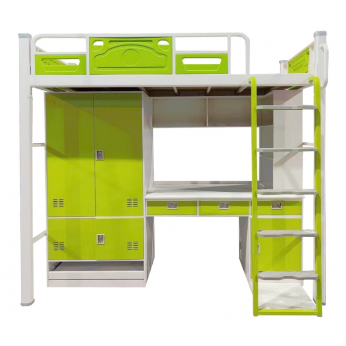 客户需求:立柱65*65*1.5八角管,横梁30*90*1.5管材,自制挂件,前床帮护栏:,护栏结构下部面板采用高密度聚乙烯冲压成型,单个护栏长度不得小于1450mm,高度不得低于300mm,护栏与床头缺口不得大于600mm;后床帮护栏:床铺靠墙体处增加采用优质冷轧钢板制作的档絮板,壁厚0.8mm,高度150mm。床下横衬30*20管材,7根,两端带塑料套。床板12mm厚胶合板,封边处理。床梯:采用爬梯,国标管材,竖梁采用壁厚1.5mm方管制作,管径30mm×30mm,踏板采用厚度为1.5mm的冷轧钢板制作,踏板尺寸370×85mm;五层踏板表面做防滑凸点处理,;踏板表面加装PVC防滑胶垫。床下衣柜、桌下柜、书架:均为钢制,材质选材优越,使用寿命长,★厚度为0.8mm,合页采用可拆卸隐藏式镀锌合页,不允许外露;隔板均为活动式隔板,内置不锈钢挂衣杆,柜门内部安装镜子,满足使用需求;柜门做百叶窗式透气孔;柜体、隔板采用优质钢板压制成型,柜门锁扣采用内凹明锁扣,★衣柜下方设置鞋柜位置抽拉托盘,鞋柜高度160mm,带抽拉功能,托盘不得抽离柜体,抽拉导轨采用无轮槽型导轨;桌面:采用优质冷轧钢板制作,厚度0.8mm;内衬优质实木颗粒板提高桌面平整度。