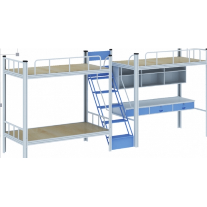 客户需求:立柱为50*50的异型管(扇形)。床帮为80*30*1.5.书架吊柜为常规。中梯,抽屉面为蓝色。床板为12mm胶合板。桌面为白枫色防火板。