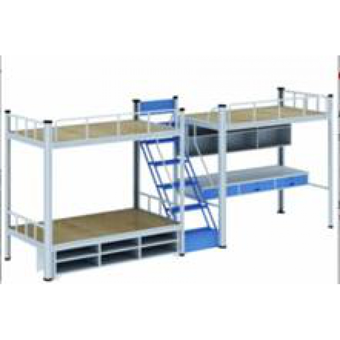 2.床梯:25×25×1.2mm,内部有加强筋结构,踏板: 钢板厚1.0mm(防滑条纹)焊接成型,盘梯位置处于床的中部。