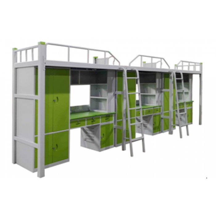 客户需求:1、评审价格及供货期;2、床梯与床邦连接处,做紧固处理并增加防松装置(弹簧垫片); 3、书桌三个抽屉只需要右边一个抽屉带锁,其余两个抽屉都不带锁; 4、桌下柜柜门不带锁具,取消活动搁板; 5、门吊锁锁片紧固时,增加止退垫片; 6、抽屉滚轮导轨材料厚度≥1.2mm,保证焊接牢固、可靠; 7、衣柜与书桌连接角铁厚度≥1.5mm,保证焊接牢固、可靠;