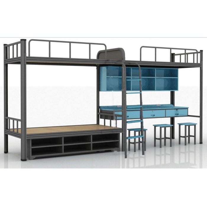客户需求:1. 床立柱:采用68*68*1.5mm 滚压型材,中柱采用50*50*1.5mm方管,在床腿的两侧各有一条宽5MM,深2MM 的梯形加强筋 2. 床帮:采用外径80*30*1.5mm 滚压型材,外侧面有两条宽5MM深2MM的加强筋; 3. 床挂件钢板:规格为200*30*2.0mm优质冷轧钢板冲压折弯成型; 4. 护栏弯管采用25*1.5mm圆管,护栏竖管采用20*1.0mm圆管,护栏尺寸1600*250; 5. 床板横撑方管25*25*1.2mm,五根均匀分布,两端有锁定床撑功能,不易随便滑动、拔取。 6.床下书柜、书桌均为为0.7mm 的冷板;桌面为优质冷轧钢板制作,人体接触面鸭嘴边处理;桌斗采用0.7mm厚的冷轧钢板制作,抽屉采用三节式导轨,抽拉顺畅,结实耐用, 7.床下配柜:通体采用0.7mm冷轧钢板制作; 8、床板为12mm胶合板,带50mm棕垫