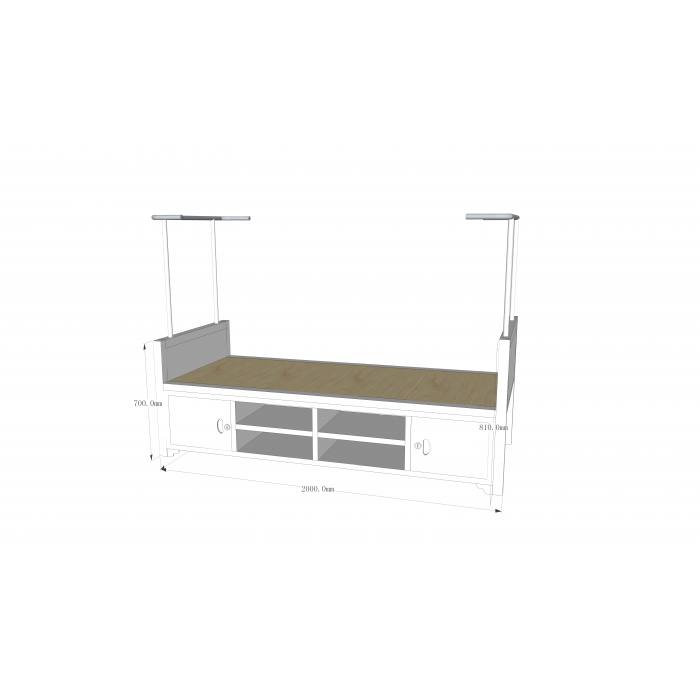 客户需求:带床下配柜柜体深为450mm,柜子锁为门吊锁 床头与床立柱为50*50,床横梁为60*40 床板为15的胶合板 带蚊帐杆