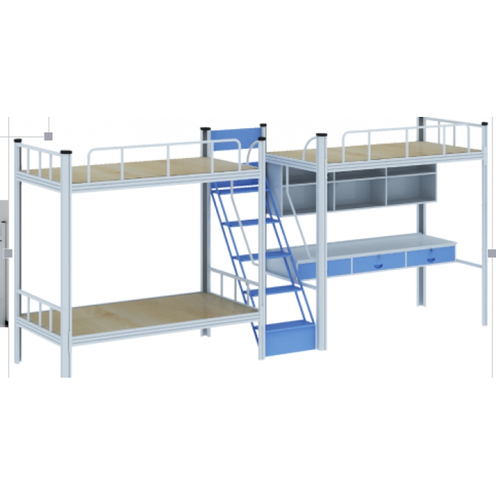 客户需求:1.床立柱68*68*1.5mm滚压型材。2.床帮为外径80*30*1.5mm滚压型材。3.床挂件为200*30*2.0mm冷轧钢板。4.护栏弯管和竖管为φ20*1.5mm管管。护栏尺寸1800*250.5.床板横撑方管为25*25*1.5mm。五根均匀分布。6.床板为0.8mm冷轧板,成槽型瓦楞状。7.爬梯为中梯,踏板厚度1.5mm。床下书桌厚度1.0mm。人体接触面鸭嘴处理。桌斗1.0mm冷轧板,抽屉导轨用三节式DTC静音导轨。