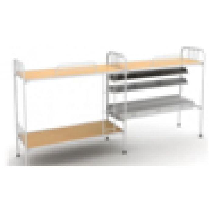 客户需求:床头为38圆管,其余按系列料厚。护栏连接方式为常规。桌面后面接线盒不要强弱电插座,两边留两个穿线孔。床板为12cm。桌面下面衬木板。导轨普通导轨。床梯连接方式为插式连接
