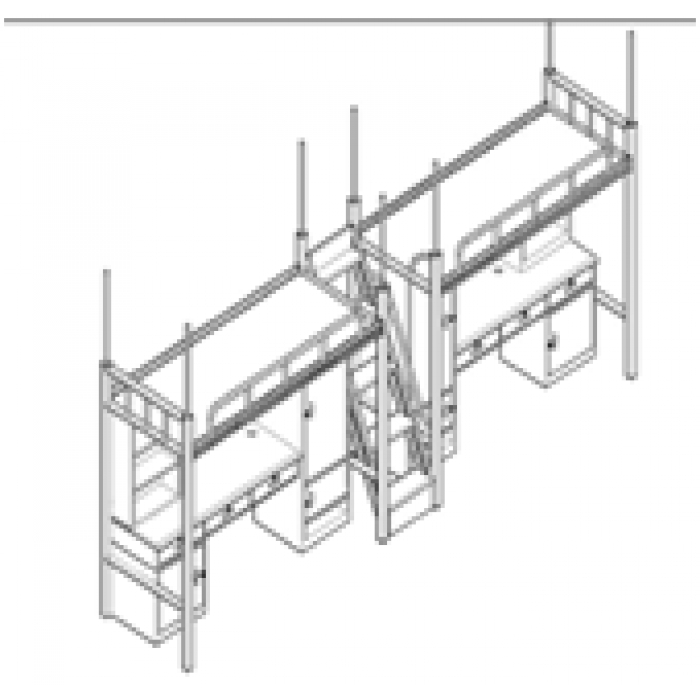 客户需求:1.柜内隔板不要。2.书桌尽量靠后,能与墙靠齐。3.蚊帐架与客户沟通,尽量用以前。4.护栏做短,用自钻丝固定。5.柜体做裙腿。6.铁床板冲孔。7.桌面下面撑板不要。8.桌面穿线孔开一个,中间。床立柱壁厚1.8mm。先行测试。柜子按系列料厚,薄边。导轨使用两节式。床板使用0.7厚。踏板使用1.0厚。下面撑钢管。床垫为普通床垫。床帮80*30*1.2