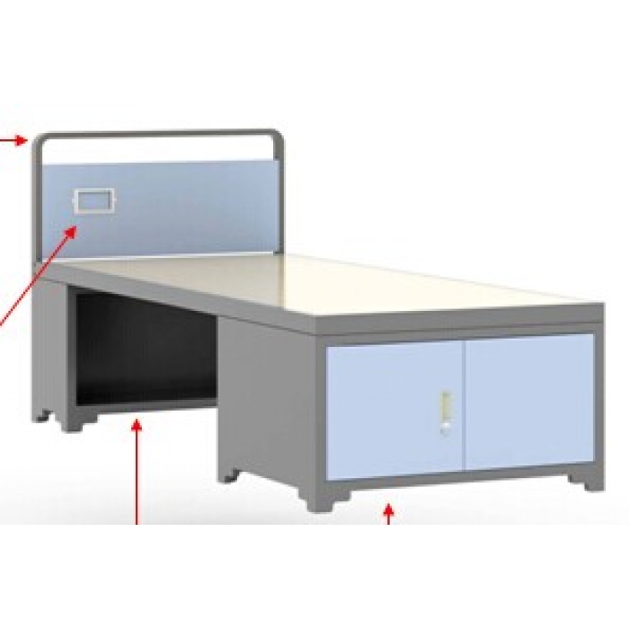 客户需求:1、床头:采用40*25*1.5mm矩形管焊制而成; 2、床邦:采用50*25*1.5mm矩形管焊制而成; 3、柜体、凳面:采用0.7mm优质冷轧钢板制作 4、饰面:钢制部分经除油、除锈、磷化后采用高压静电喷塑处理,粉末采用“阿克苏诺贝尔”专用粉末,色彩附着力强、永不褪色。