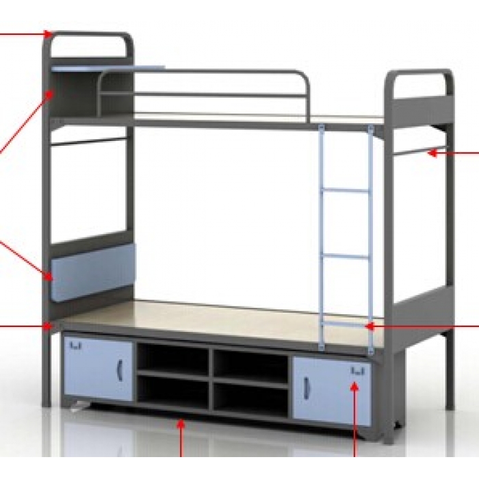 6、床头护板、床下配柜:柜体采用0.7mm优质冷轧钢板焊制而成。