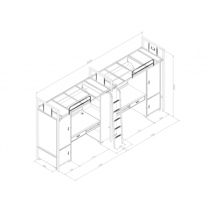 客户需求:1、 床头采用40*40*1.5mm优质方管制作,国标钢材; 2、 床帮采用25*40*1.5mm钢制矩形管,国标钢材; 3、 书桌桌面采用1.0mm优质冷轧钢板,桌面长边采用鸭嘴边造型设计;桌斗采用0.8mm优质冷轧钢板制作,国标钢材,抽屉采用门吊锁,结实美观; 4、 书架采用1.0mm冷板,加强处理,书架挂板采用1.5mm冷板,专有模具加工。 5、 床撑采用25*25*1.5mm钢制矩形管制作,5根均布,国标管材; 6、 护栏规格:1020*240,位置往两边床头各偏移200mm,采用Φ20*1.5mm钢制圆管制作,结实耐用,国标管材; 7、 床梯采用25*25*1.5mm两根钢制矩形管煨弯成型,国标管材;踏步采用1.0mm优质钢板制作,内含钢制加强筋,保证强度; 8、 床板采用12mm优质胶合板制作;