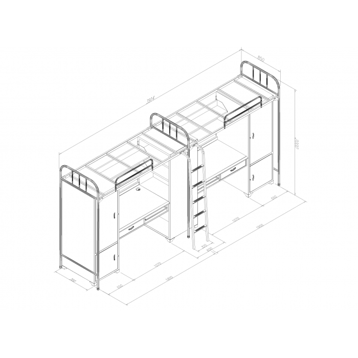 客户需求:1、 床头采用Φ38*1.5mm优质钢管制作,国标钢材; 2、 床帮采用25*40*1.5mm钢制矩形管,国标钢材; 3、 书桌桌面采用1.0mm优质冷轧钢板,桌面长边采用鸭嘴边造型设计;桌斗采用0.8mm优质冷轧钢板制作,国标钢材,抽屉采用门吊锁,结实美观; 4、 书架采用1.0mm冷板,加强处理,书架挂板采用1.5mm冷板,专有模具加工。 5、 床撑采用25*25*1.5mm钢制矩形管制作,5根均布,国标管材; 6、 护栏采用Φ20*1.5mm钢制圆管制作,结实耐用,国标管材; 7、 床梯规格:1020*240,位置往两边床头各偏移200mm,采用25*25*1.5mm两根钢制矩形管煨弯成型,国标管材;踏步采用1.0mm优质钢板制作,内含钢制加强筋,保证强度; 8、 储物柜采用0.8mm优质冷轧钢板制作,柜腿采用1.5mm冷板压制而成国标管材,门锁采用门吊锁,结实美观; 9、 床板采用12mm优质胶合板制作;