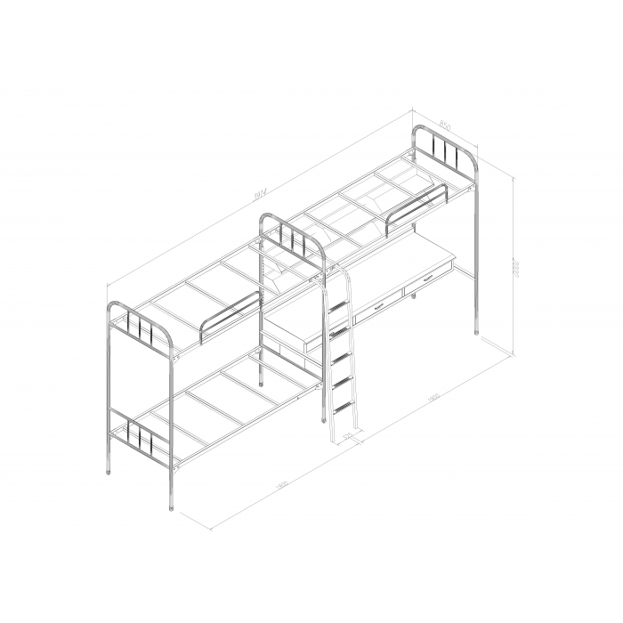 客户需求:1、 床头采用Φ38*1.5mm优质钢管制作,国标钢材; 2、 床帮采用25*40*1.5mm钢制矩形管,国标钢材; 3、 书桌桌面采用1.0mm优质冷轧钢板,桌面长边采用鸭嘴边造型设计;桌斗采用0.8mm优质冷轧钢板制作,国标钢材,抽屉采用门吊锁,结实美观; 4、 书架采用1.0mm冷板,加强处理,书架挂板采用1.5mm冷板,专有模具加工。 5、 床撑采用25*25*1.5mm钢制矩形管制作,5根均布,国标管材; 6、 护栏规格:1020*240,如图中所示往两边床头偏移200,采用Φ20*1.5mm钢制圆管制作,结实耐用,国标管材; 7、 床梯采用25*25*1.5mm两根钢制矩形管煨弯成型,国标管材;踏步采用1.0mm优质钢板制作,内含钢制加强筋,保证强度; 8、 储物柜采用0.7mm优质冷轧钢板制作,柜腿采用1.5mm冷板压制而成国标管材,门锁采用门吊锁,结实美观; 9、 床板采用12mm优质胶合板制作,绿色环保;