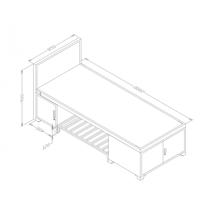 3611880,尺寸:2000*850*900,材质:钢制床架,木质床板,颜色:浅灰色