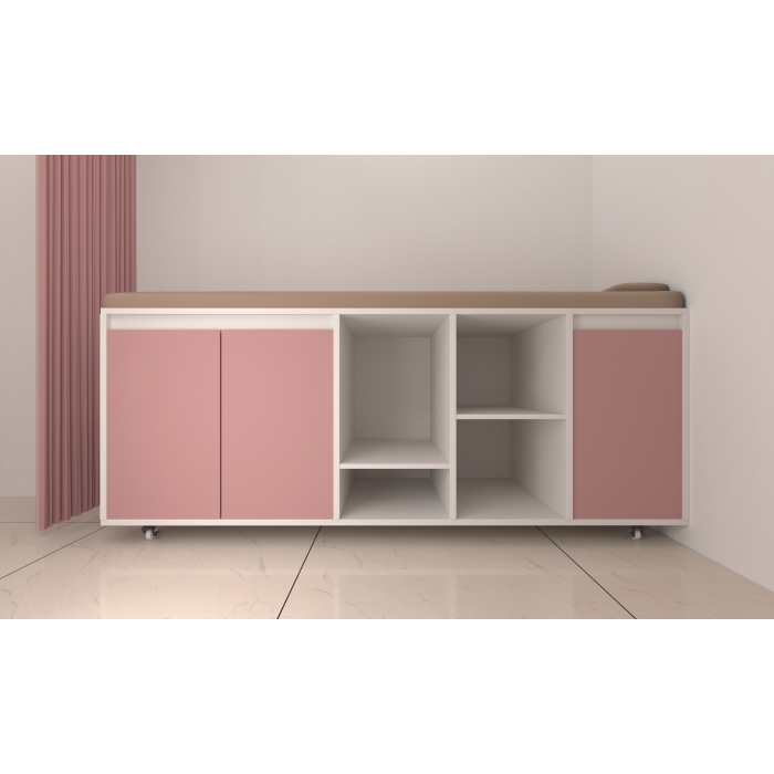 3612525,尺寸:长2000*宽700*高750mm,材质:木质+软包,颜色:白色+定制粉色