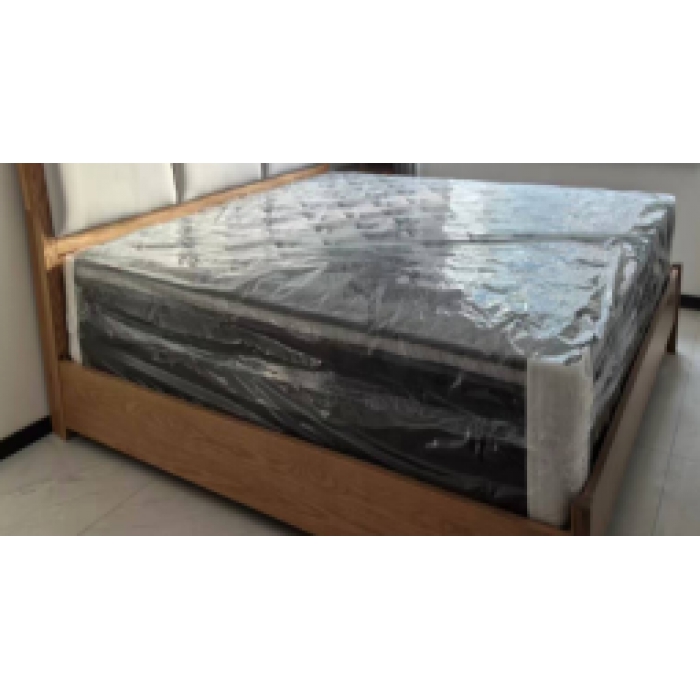 客户需求:按照样品样式及颜色制作 整体框架:采用白蜡木;整体工艺采用榫卯结构; 床屏:采用橡木;床屏加装软包; 床铺板:采用松木板条分布均匀铺设制作,每条木板宽度≥10mm,厚度≥18mm; 底漆、面漆:采用环保水性面漆。 安全细节:床腿底部加装聚氨酯材质防滑垫,所有棱角R角≥2mm倒圆处理