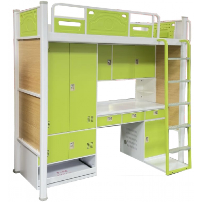 (14)颜色:护栏封板、床头封板、柜门、抽屉、爬梯为果绿色+床立柱两侧木封板为新靓木色