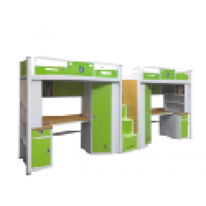 3711707,尺寸:4700*900*2000,材质:钢制,颜色:床柜门、抽屉面、塑料件封板、亚光绿色 ,桌面榉木色防火板颜色色号70314,其余白色色号220