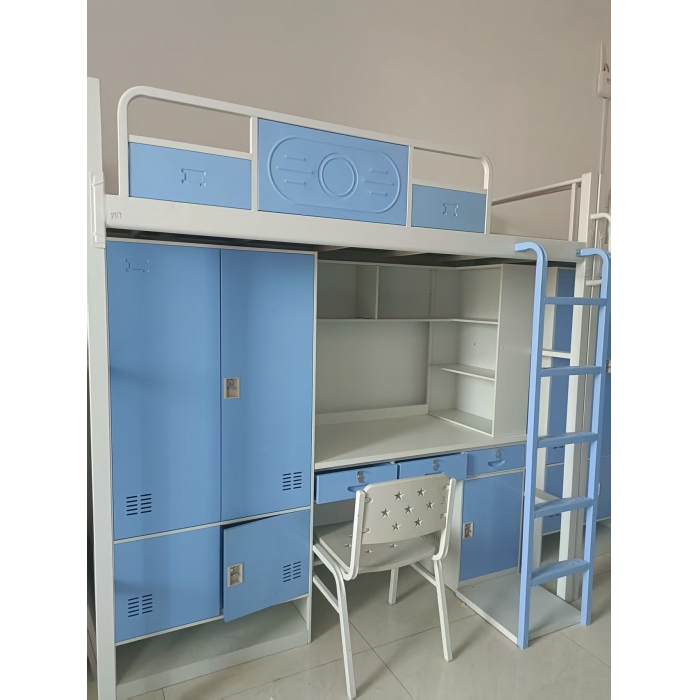 下铺。所有金属部件经过酸洗磷化静电喷塑,具有抗冲击、耐老化、耐磨、防火。护栏