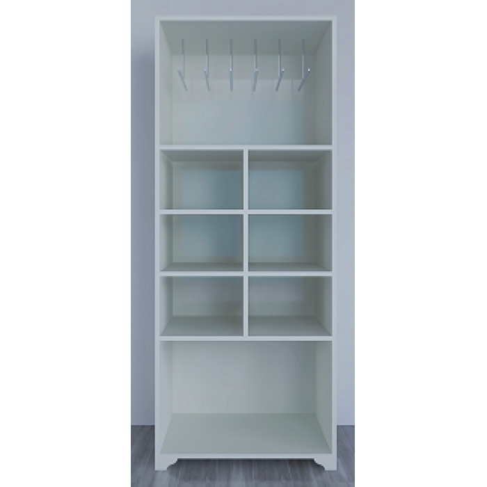客户需求:1.柜体:采用系列厚冷板;2.层板:共分为6层;3.结构:上层为毛巾架,上面平均分布6根直径18mm的不锈钢圆管供挂毛巾使用;中间3层为脸盆架,平均分为6个格子;最底层为热水壶柜(可放置6个热水壶);参考前期料号:9311255