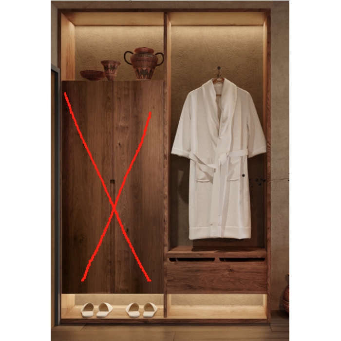 客户需求:衣柜左边柜门不要,增加2块隔板。右边带挂衣杆。