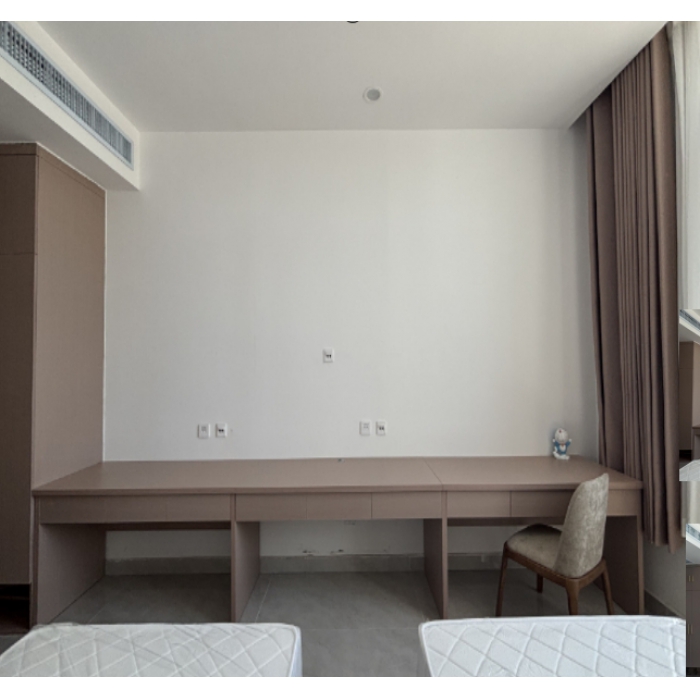 客户需求:EO级别板材,18mm厚度 写字桌与样品一致,一侧写字桌镶嵌岩板,中间不带腿,电视柜不要抽屉做弧形向内。