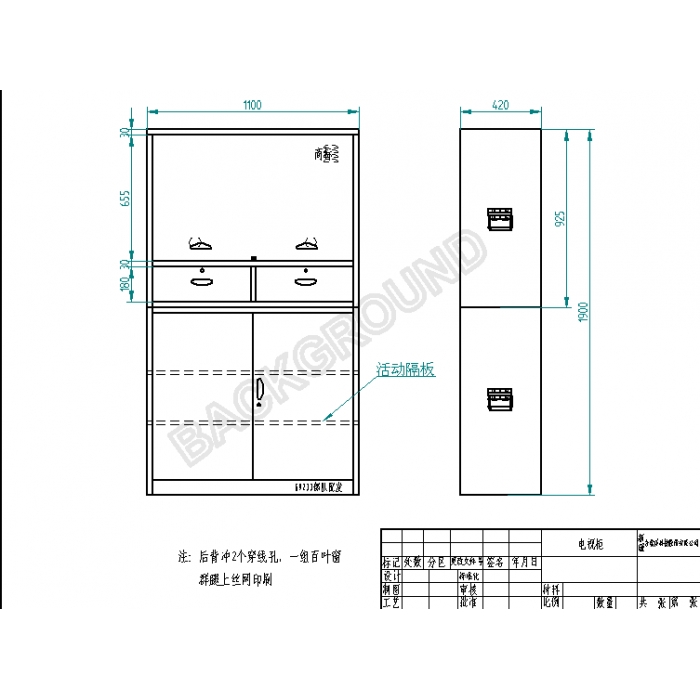 客户需求:侧板1.2的冷板,门子抽屉1.0的.抽屉导轨1.0的制作,后背0.8的下柜带2块活动隔板其他如图