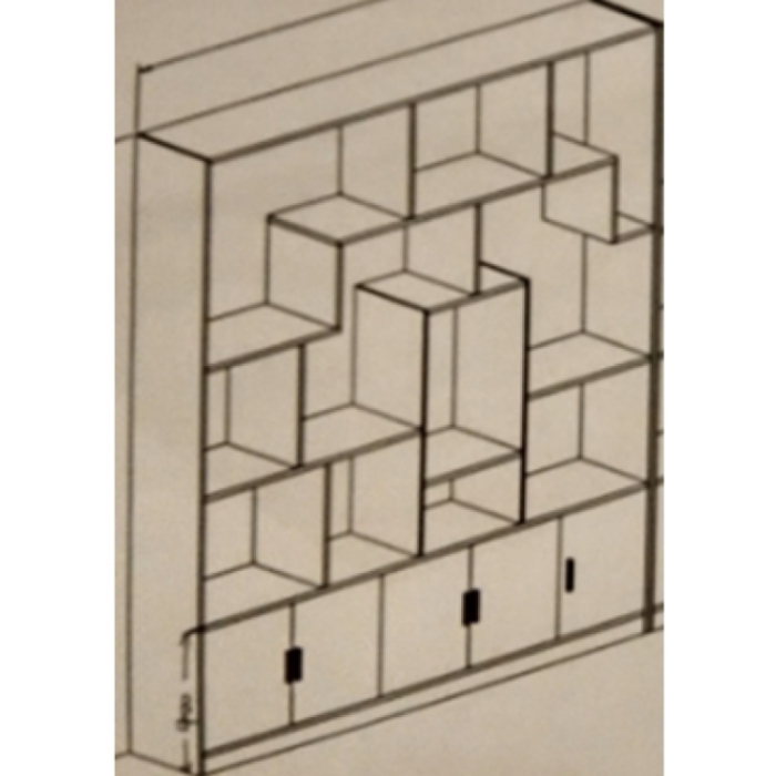 3912804,尺寸:2400W*400D*2400H,材质:三氨板(框架用25厚,隔板用16厚)下面一层柜子,上面用格挡,颜色:开罗胡桃