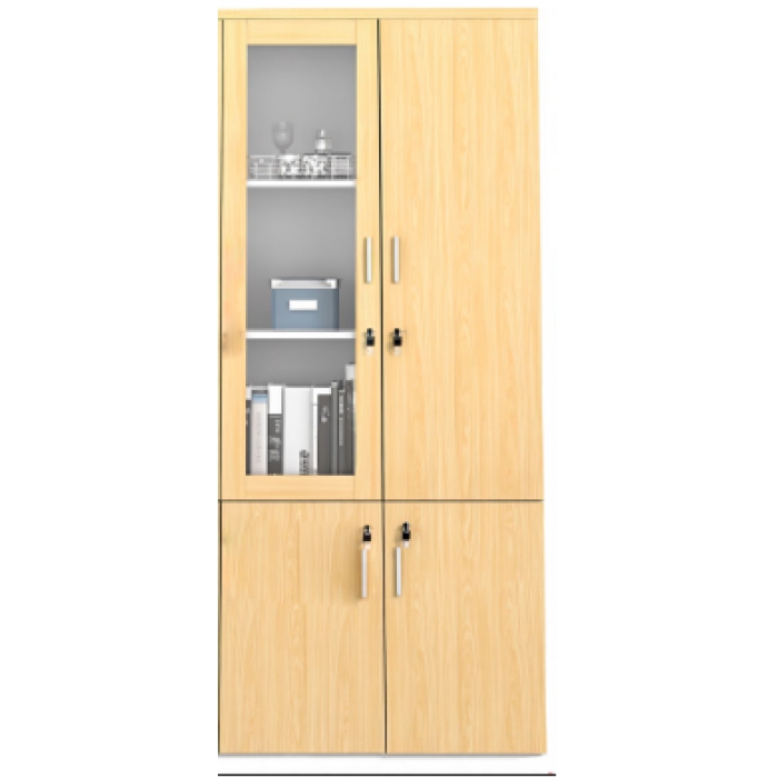 客户需求:1、主要材料:所有板件采用E0级实木颗粒板; 2、主要板材厚度:顶板、层板厚度为25mm,侧板、门板、底板厚度为16mm; 3、功能配置:主柜(上下掩门,上木框玻璃门+2件活层,下木门+1件活层); 4、五金配置:阻尼门铰、锁具、拉手、连接件等; 5、封边:采用见光面为2.0mm厚全自动封边工艺,防水、防潮、不变色。