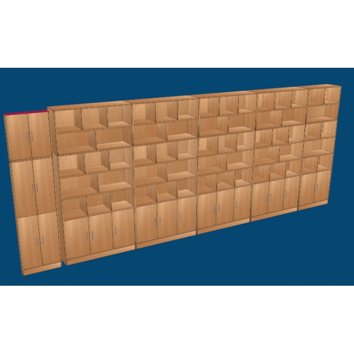 3912830,尺寸:7025*2740*300mm,材质:三聚氰胺板,颜色:柜体新靓木+柜门暖白