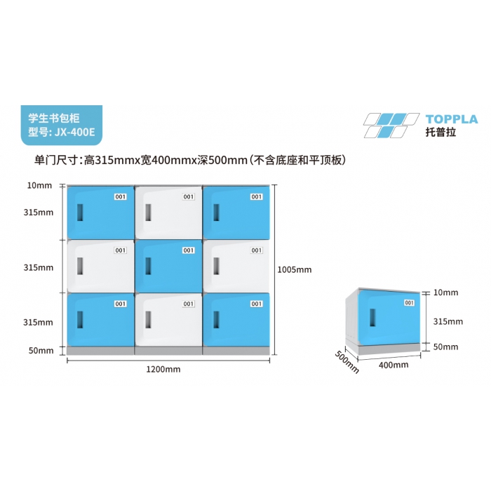 3973998,尺寸:高315mmx宽400mmx深500mm(不含底座50mm/平顶板10mm),材质:ABS,颜色:白色+蓝色+兰色