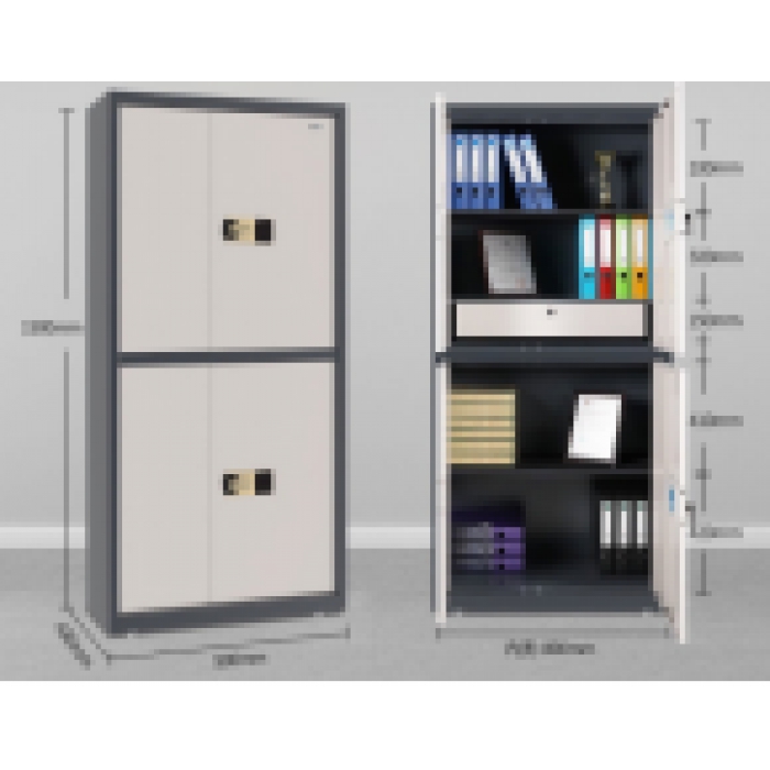 客户需求:此产品为外采(采购部杜宏卫) 等级:A级-国密级 材质: 1.上下均为对开门,配置:活动层板2活动机械抽*1 2.主要材料:板厚:柜门≥1.0mm柜体≥1.0mm。 3.门铰链采用高强度转轴结构,其中转套直径为Ф16mm,转轴直径为Ф10mm,坚固、可靠、无变形。 4.锁具:上下门各配一把电子密码锁 5、重量:85KG(士1KG)