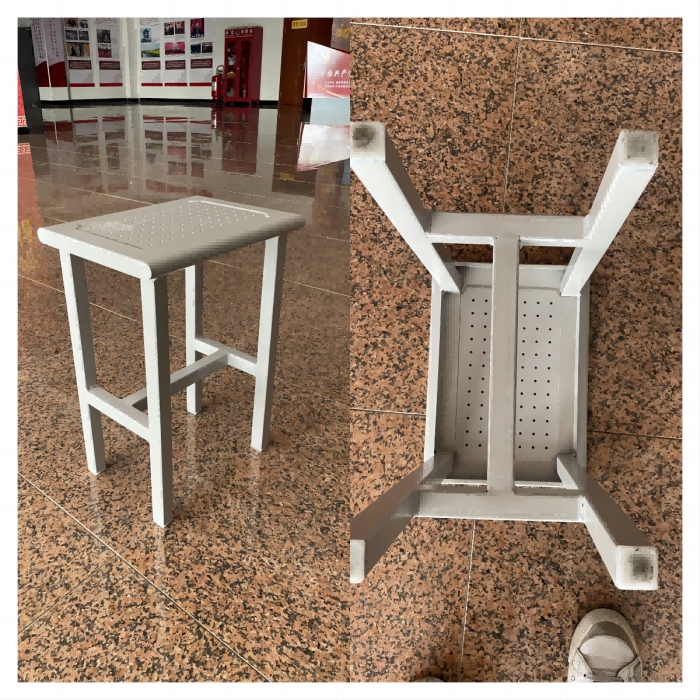 客户需求:1:凳架采用25*25*1.2mm方管 2:凳面采用1.0mm冷轧钢板,凳面有透气孔,长边圆弧形设计 3:每个方凳带喷涂编码0001-1288