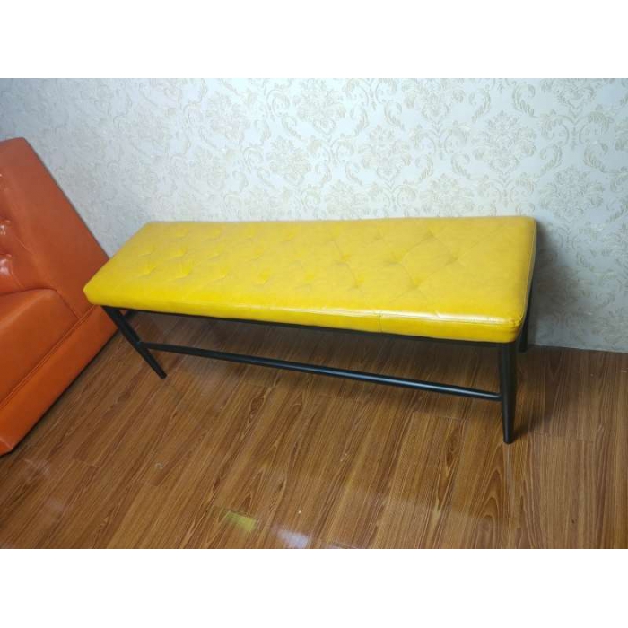 4011879,尺寸:1200*420*500,材质:钢架,海绵,皮革。,颜色:黄色