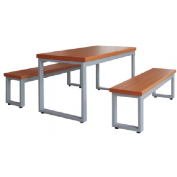 4111820,尺寸:1800*700*760mm,材质:防火板+钢制,颜色:黑色桌架+榉木色桌面凳面