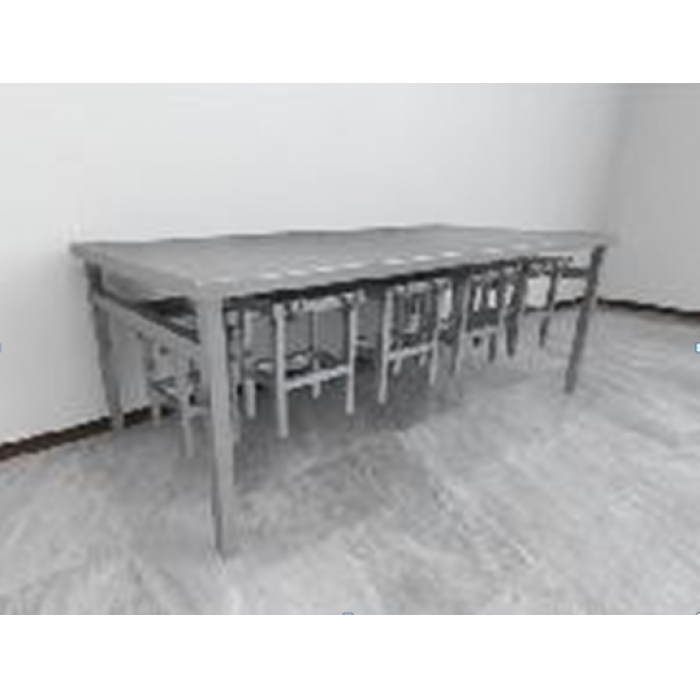 客户需求:1.桌面采用 0.7mm 不锈钢板,四周折 40mm 包边,长边圆弧工艺处理,底面 0.7mm 厚度板折加强筋加固工艺;桌面内撑整张木板,使桌面更平整,降噪,结实耐用; 2.桌面支撑架采用 50mm*50mm 不锈钢方管;桌面下焊接不锈钢卡槽式挂钩,悬挂不锈钢凳 3.凳面采用 0.7mm 不锈钢板,四周折 40mm 包边,长边圆弧工艺处理,底面 0.7mm 厚度板折筋加固工艺,凳面内撑整张木板,使凳面更平整,降噪,结实耐用; 4.凳面立脚采用 30mm*30mm 不锈钢方管; 5.凳子连接梁采用 30mm*30mm 不锈钢方管; 6.食堂餐桌椅组合整体无漏焊虚焊,表面平整光滑,圆角、圆弧工艺避免碰撞损伤,结构简洁稳固,易于清洁打理。 7.桌面、凳面底部均采用加强筋支撑加固工艺。