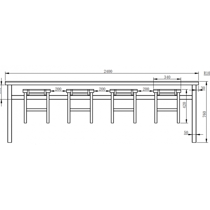 客户需求:1、桌面下焊接不锈钢卡槽式挂钩,每张桌子可挂8把凳子;2、四周折40mm包边,长边圆弧工艺处理,底部采用加强筋支撑加固工艺;桌面内撑整张木板;3、桌面配套2mm水晶垫;