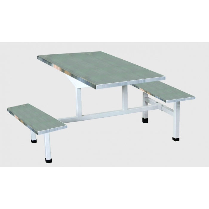 客户需求:桌面凳面25mm厚,外包0.8mm不锈钢板。长条凳面尺寸1400*350,浅灰色系列钢制组合桌架。