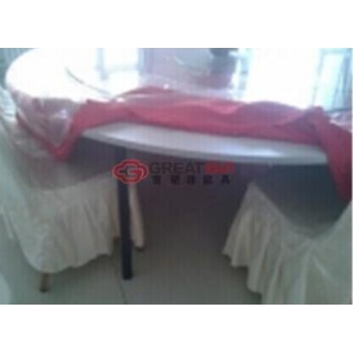 客户需求:客户要求:桌板采用25mm、桌架采用40*40方管、带玻璃转盘转芯(尺寸常规),配两套大红色桌布,铺透明水晶板。