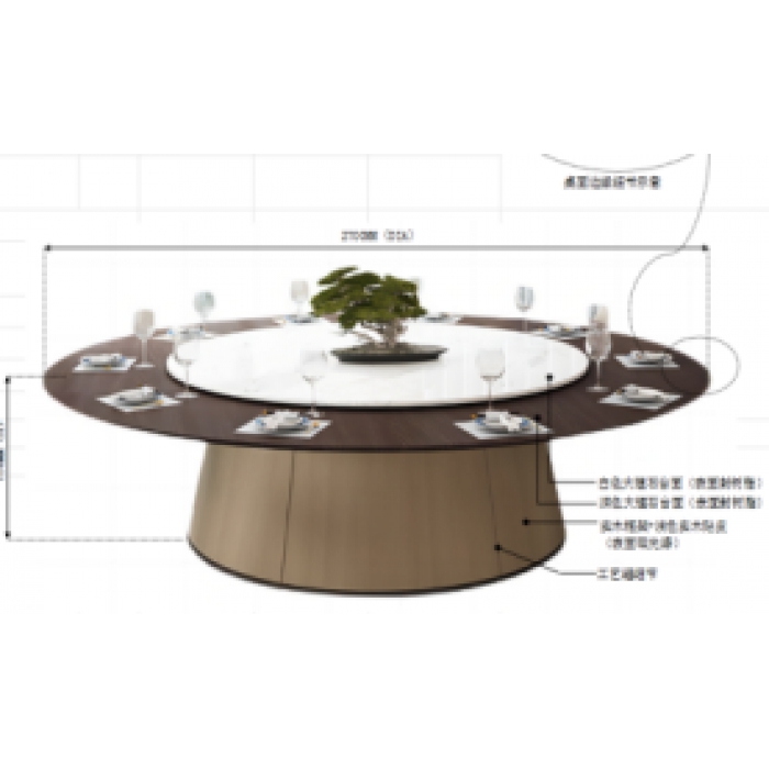 4126955,尺寸:2700DIAx750H(MM),材质:大理石+实木,颜色:白色+深胡桃