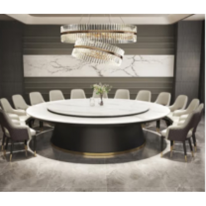 客户需求:1.餐桌主体框架:采用优质橡木实木制作,采用经烘干、防腐、防虫处理后优质橡木制作,表面无结疤、腐朽变质,木材经刨光处理,结合部位无松动,不易变形开裂,实木方具有中等抗弯曲强度及刚性,断裂强度高,具有硬度高,承受力强,耐腐朽等性能,具有极好的抗蒸汽弯曲性能,含水率须符合GB/T17657-2013标准,甲醛释放量须符合GB/T17657-1999标准,不易变形开裂,结构结实;转盘采用电动转盘,桌面四周五金边框封边,内部钢架结构,特质机芯; 2.面材:选用12mm厚优质食品级环保岩板材质,经1280°高温烧制,具有规格大、可塑造性强、花色多样、耐高温、耐磨刮、防渗透、耐酸碱、零甲醛、环保健康等特性,四周圆弧边工艺处理,桌面防渗透性、抗冲击性、高温耐性、耐刮磨性强,表面易于清洁,光泽度优秀美观结实; 3.油漆:采用优质环保净味漆,五底三面油漆工艺处理,表面硬度2H级,具有较好的耐磨、耐高温性能、附着力强,环保要求达到标准,涂装后油漆样块甲醛释放量≤0.2mg/L; 4.五金配件:采用优质品牌五金件,五金配件紧密拼接,牢固,间隙细小且均匀,所有五金件作防锈、防腐处理,金属件外观要求,电镀层,表面应无剥落、返锈、毛刺,表面应无烧焦,起泡、针孔、裂纹、花斑和划痕,耐腐蚀