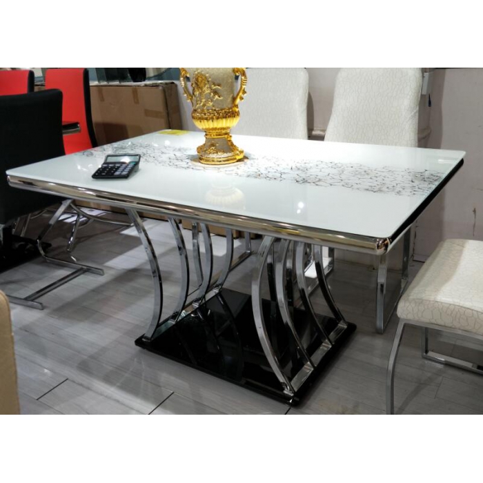 4199858,尺寸:1400*700*760,材质:钢制镀络桌架,钢化玻璃桌面。,颜色:不锈钢色、白色