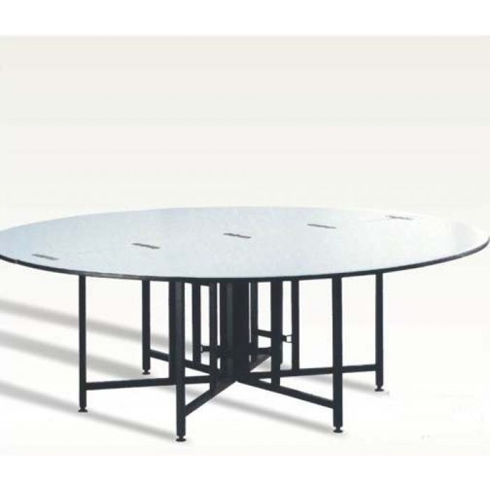 4199990,尺寸:Φ3000*760,材质:桌架钢制,在桌面三聚氢胺板制作,PVC封边,玻璃转盘,颜色:黑色桌架,灰白色桌面