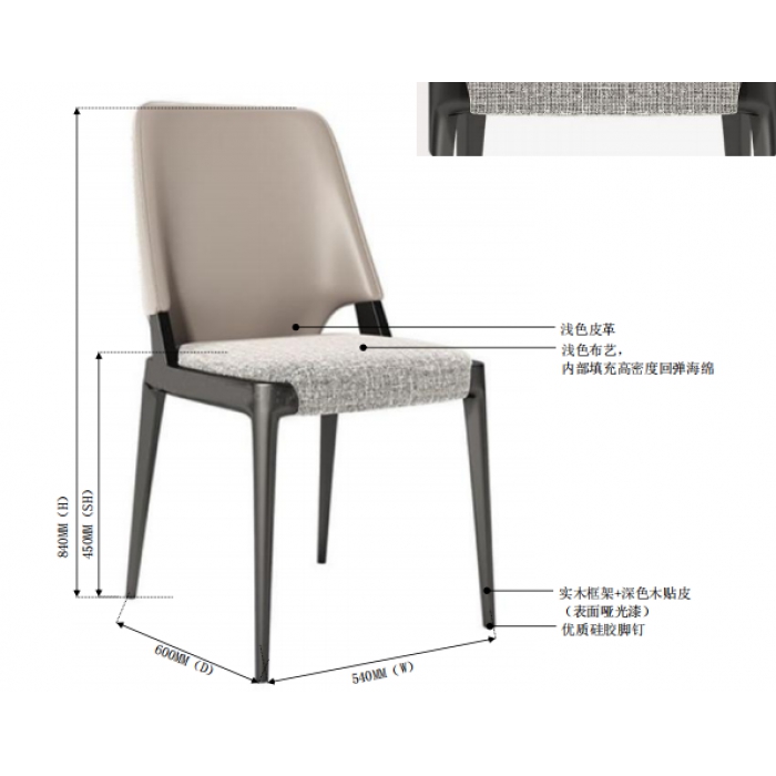 4226952,尺寸:540Wx600Dx840H 450SH(MM),材质:实木+环保皮实木,颜色:浅灰+黑色