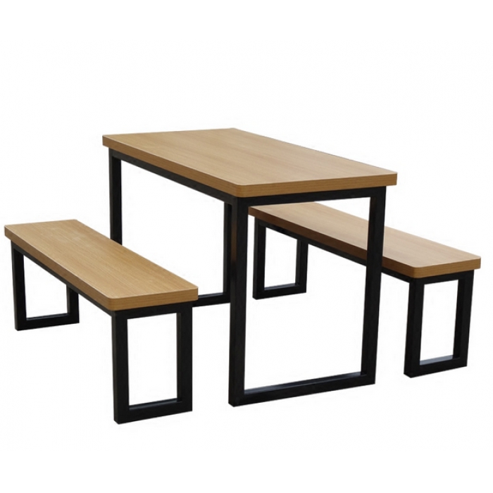 4311896,尺寸:桌子尺寸:1400*700*760、凳子尺寸1400*350*450,材质:钢制+防火板,颜色:黑色+北美胡桃