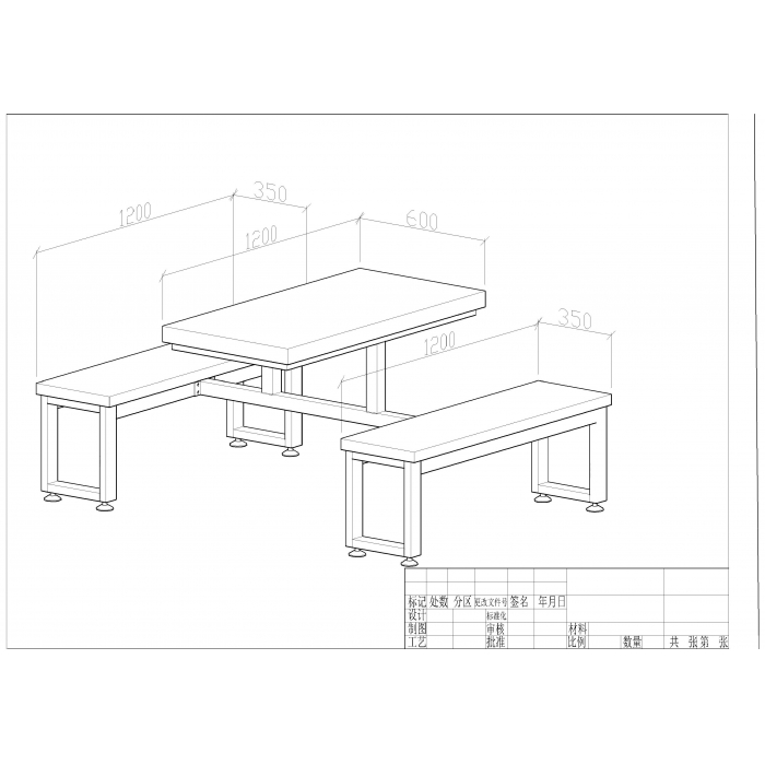 客户需求:材质按照公司系列餐桌4111011制作,餐椅和餐桌是连体的,餐桌架按照所拍图片制作。