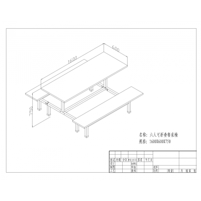 六人连体可折叠餐桌椅