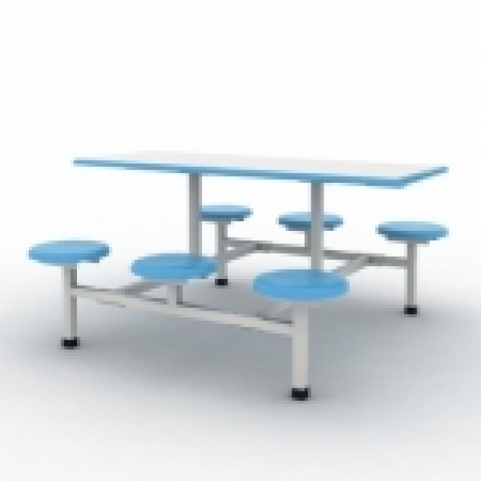 4311960,尺寸:1600*1550*750,材质:钢制,颜色:钢架浅灰、凳面浅天蓝、桌面不锈钢